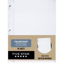 Double the strength of competition! Five Star Filler Paper is reinforced with more durable, patent-pending triangle-shaped holes and stronger reinforcement tape to resist tearing. Keep your binder filled with all the paper you’ll need for the entire school year.