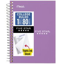 Five Star® Spiral Notebook Plus Study App, 1 Subject, College Ruled, 8 1/2" x 11", 6 Pack, Assorted Colors