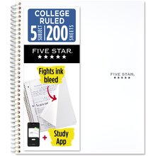 Five Star® Spiral Notebook Plus Study App, 5 Subject, College Ruled, 8 1/2" x 11", White