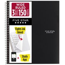 Five Star® Spiral Notebook Plus Study App, 3 Subject, Wide Ruled, 8" x 10 1/2", Black