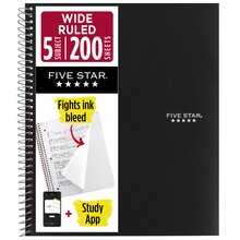Five Star® Spiral Notebook Plus Study App, 5 Subject, Wide Ruled, 8" x 10 1/2", Black