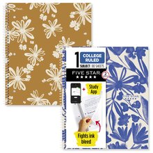 Five Star® Soft Petals Spiral Notebook Plus Study App, 1 Subject, College Ruled, 8 1/2" x 11", 2 Pack